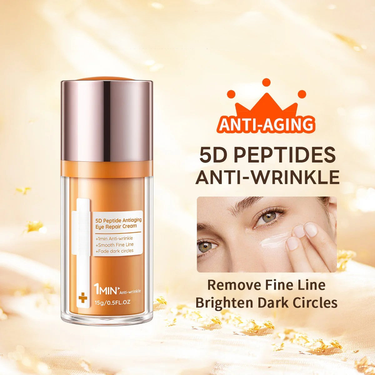 Answer 1: The advanced 5D peptide technology penetrates multiple layers of the skin, targeting the root causes of aging. This multi-layered approach helps stimulate collagen production and boost elasticity, which are essential for reducing fine lines and smoothing the texture of the skin around the eyes.